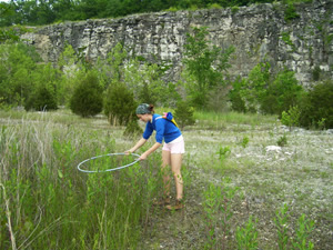 Nicole Stone collecting data in the quarry bottom