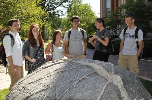 The Columbian Boulder, known as "The Boulder," is located in front of East College. It was given to the University in 1892 to commemorate the 400th anniversary of Columbus' discovery of America. Several alumni bought it from a farmer who charged visitors 10 cents to view the "petrified turtle" he had on his farm. It soon grew to be a favorite meeting place on campus for couples meeting for chapel dates and honorary societies holding initiation rituals.