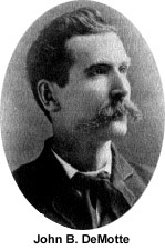 Increasing specialization brought about division of the chair of natural sciences into its various components. In 1881 Mansfield's title was changed to professor of physics and biology and the following year to professor of biology. Appointed to the new professorship in physics in 1882 was Asbury graduate John B. DeMotte, formerly principal of the preparatory department and an instructor in both mathematics and Latin. A man of many talents, DeMotte played the pipe organ, conducted the university orchestra, and earned one of the four pro merito Ph.D. degrees awarded by his alma mater. He led the new physics department through the period of transition from Indiana Asbury to DePauw University with great distinction, but resigned suddenly in 1891. Joining the Slayton Lyceum Bureau, he filled over 3000 lecture engagements in the United States and Europe over the next 25 years, speaking on such topics as "Electricity, Its Nature and Possibilities" and "The Princes of the Realm of Tone."