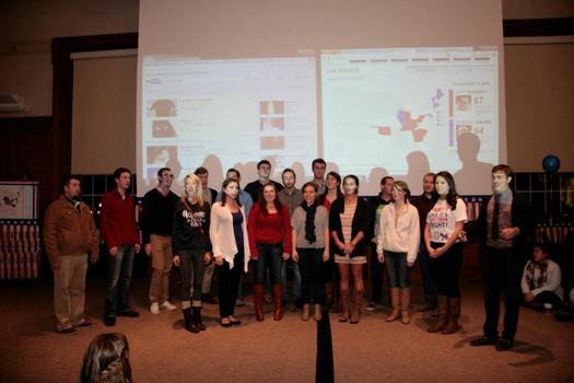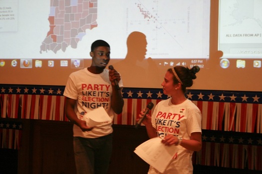 DePauw's Election Watch 2012 was co-sponsored by the Political Science Department, the Departments of Communication and Theater, D3TV, WGRE, The DePauw, College Democrats, College Republicans, DePauw After Dark, and the President's Office.