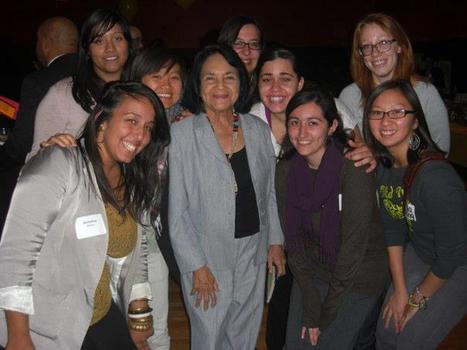 (Photo captions: above from left, Michelina Ferarra in Morocco, Winter Term 2010; Cynthia Montoya, Betty Jin Jin Cao, Michelina Ferrara, renowned labor activist Dolores Huerta, JC Pancratz, Margarita Villa, Vanessa Bernal, new faculty member Christina Holmes, Phua Xiong; Perla Torres, 2011; Betty Jin Jin Cao, Michelina Ferrara, Crystal Lee, Keke Nartay, Melody Buckley.)