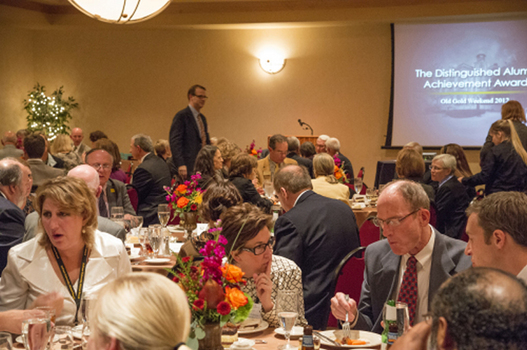 Alumni returned to campus to help DePauw celebrate its Old Gold Weekend, October 4-6. Events included a 175th Anniversary Distinguished Alumni Lecture, a Board of Trustees Reunion, an award ceremony recognizing alumni achievement, and the traditional Old Gold football game.