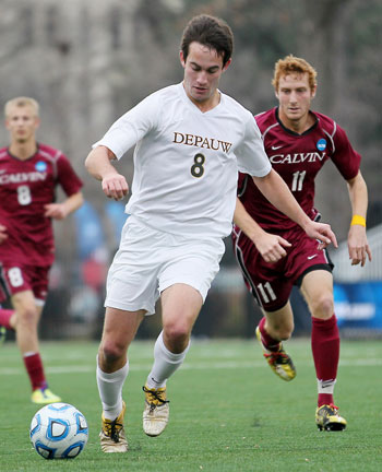 River Forest, Ill. - The announcement of starting lineups was barely complete before DePauw's Alieu Musa delivered the game-winning goal in the Tigers' 3-0 win over Calvin in the NCAA Division III Men's Soccer Championship first round matchup.