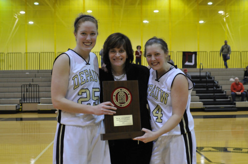 Denison took a quick 5-0 lead and still held a 10-5 advantage five minutes into the contest. DePauw's Savannah Trees knocked down a three-pointer and Alex Gasaway hit a bucket to event the score at 10-10 before Katie Aldrich added a layup and Kathleen Molloy nailed a three to cap a 10-0 run which put DePauw ahead 15-10 with 9:33 left in the half.
