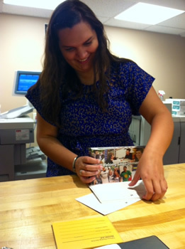 In addition to the basics of collating, folding, cutting, padding, and stapling, specialized equipment enables Printing Services to produce comb-bound books, saddle-stitched booklets, drilled sheets (one, two, or three hole), and notepads. Loose leaf books can also be bound by using GBC combs, which are available in black and stocked in sizes ranging from .25" to 1.5" in diameter.