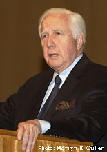 [DOWNLOAD AUDIO: "Keeping History Alive" 751KB] We need to encourage better teaching of history, encourage more people to major in history, and we need to thank our lucky stars that we have wonderful liberal arts colleges like DePauw. I really think that DePauw and the other great small liberal arts colleges in America are the vital mainstream of higher education in our country. And, as a consequence, I am extremely proud and pleased to be invited to come here."