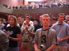 [DOWNLOAD AUDIO: "Diversity & Size" 367KB] "At Duke, I think that we have it great because most of our classes have 25 to 30 kids in 'em. Here, most of 'em have 15 to 20... it's just a great way to get an education." Coach K mentioned that DePauw's basketball teams went to the final 4 (women's) and final 8 (men's) in last spring's NCAA Division III tournament, and revealed his Tiger connection: the nephew of DePauw men's head coach Bill Fenlon is Casey Sanders, a senior on the Duke team.
