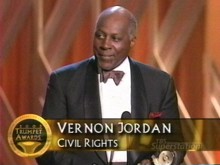 Vernon Jordan, a former president of the National Urban League, was honored for his life of work in the civil rights movement. "It's a joy, a very special privilege for me, to accept this award about 15 blocks from where I was born," Jordan said. "I was born in the first public housing project for black people in this country, University Homes... and what I know is that it's a long, long way from University Homes to the Trumpet Award. But I also know that I did not get here by myself."