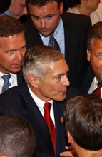 I've heard it's a great school." Clark arrived as a new poll finds he "is tied with President George W. Bush in a head-to-head matchup," according to a story by the Associated Press. "Clark, a retired army general, garnered 49 per cent support to Bush's 46 per cent, which is essentially a tie given the poll's margin of error. The CNN-USA Today-Gallup poll was conducted September 19-21, beginning two days after Clark announced he would become the 10th Democratic candidate for the party's nomination" (read more here and here).