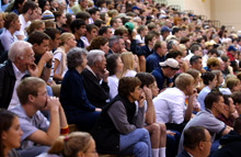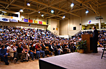 students, faculty, alumni and visitors he passed as he made his way to the stage.