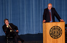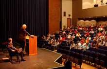 Paul Volcker, who is credited with ending the spiral of inflation in the 1980's, spoke in Moore Theatre of the Performing Arts Center on corporate responsibility in the wake of recent scandals at a spate of American corporations, including Enron, Worldcom and Arthur Andersen.