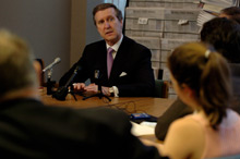 going to be won on the battlefield," Cohen said earlier in the day, at an afternoon news conference at the Eugene S. Pulliam Center for Contemporary Media. The former defense chief believes the war on terror "is going to be won by good police work, covert action, by sharing of intelligence across many countries and integrating that intelligence." Cohen also took part in a student forum and a dinner at the residence of DePauw President Robert G. Bottoms, which was attended by members of DePauw's Board of Trustees.