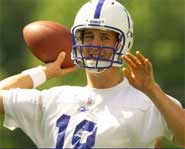 Manning, who led the Colts to the AFC championship game in 2003, is the only NFL quarterback to throw for 3,000 or more yards in each of his first six seasons and the only one to throw for 4,000 or more in five consecutive seasons. He's also thrown 25 or more TD passes in each of the past six campaigns and has started the first 96 regular season games of his career -- also league firsts -- and completed 2,128 passes for 24,885 yards in his first six years, all-time NFL high marks. The Colts are off to a 4-2 start this season.