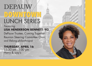 April 16, 2026: Indy Downtown Lunch Series Get to know fellow Indianapolis alumni as you enjoy a conversation with Lisa Henderson Bennett '93. Lisa will speak on “From Lab to Legacy: Redefining Impact Through Science, Motherhood, and Civic Leadership.” |