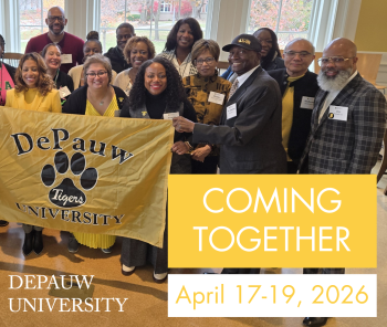 April 17 - 19, 2026: Coming Together Coming Together Weekend looks to honor the legacy of excellence, impact and dedication of a diverse community of DePauw alumni and students through relationship building, mentoring, and celebration. The event is hosted by the Tucker E. Wilson Black Alumni Association and is open to all members of the DePauw community. Registration Coming Soon |